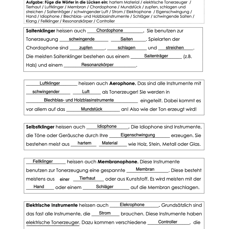 Instrumente den Instrumentenfamilien zuordnen können
